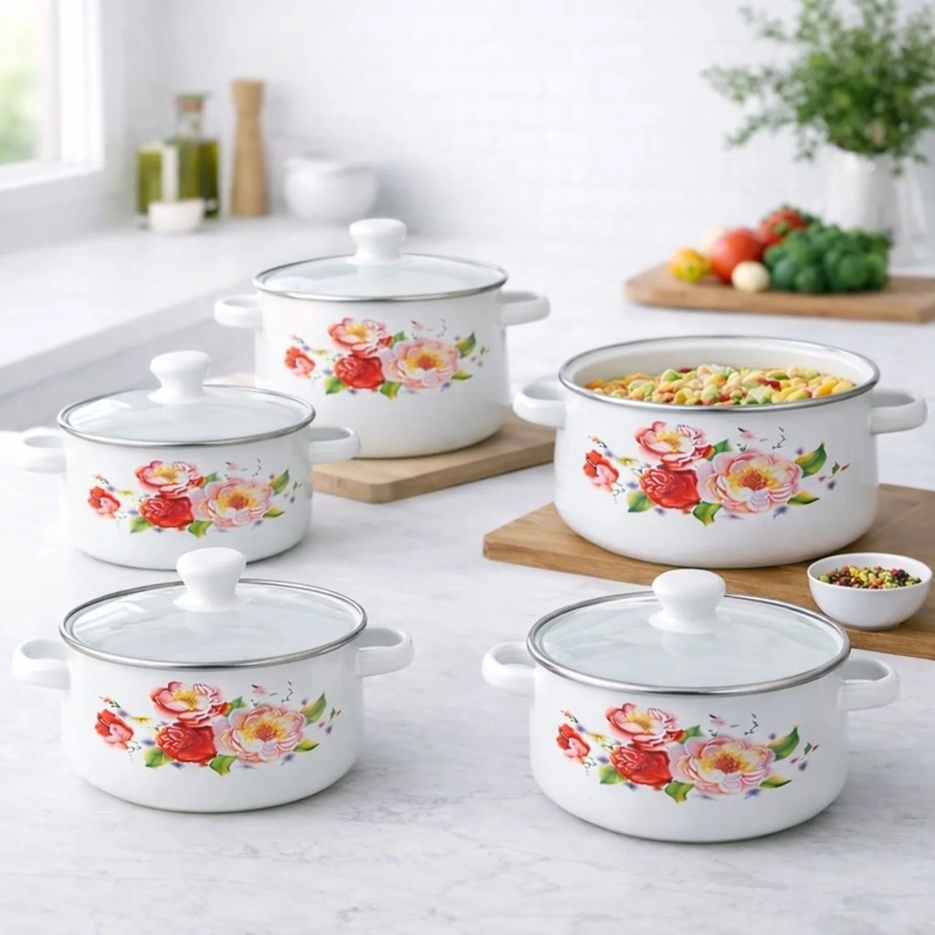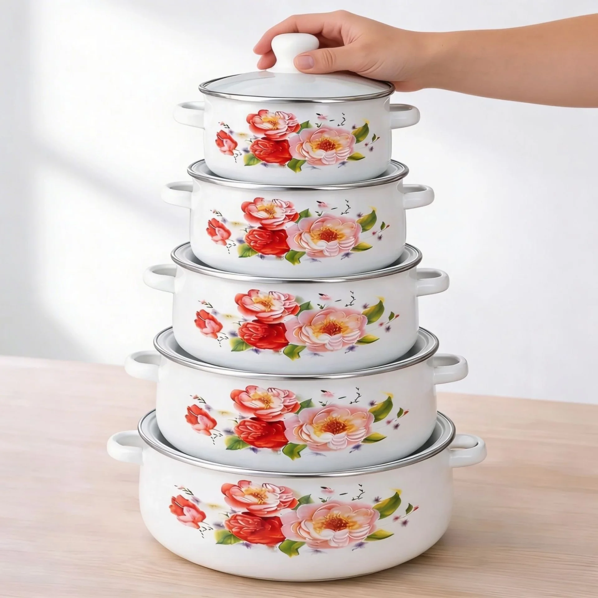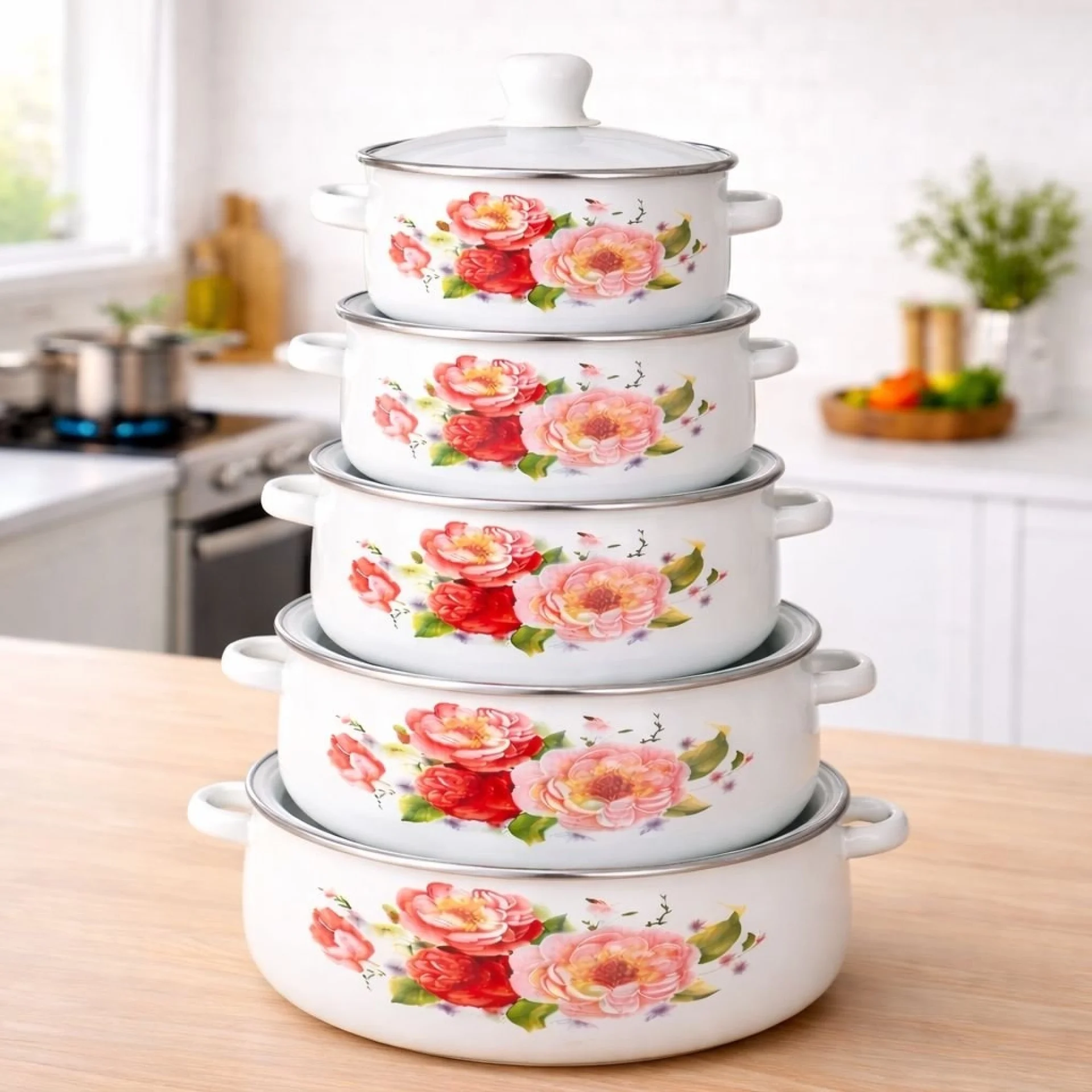 Комплект бели емайлирани тенджери със шарка – 5 броя Добавете стил и практичност във вашата кухня с този красив комплект бели емайлирани тенджери. Със своя елегантен дизайн и декоративна шарка, те придават уют и изискан вид, докато осигуряват отлични резултати при готвене. Емайлираното покритие предпазва храната от директен контакт с метала, което прави готвенето по-здравословно и запазва естествения вкус на ястията. Подходящи за:✔ Газови котлони Предимства:✔ Лесни за почистване Заключение:Практичен и красив комплект, който съчетава функционалност и елегантност – идеален избор за всяко домакинство. |