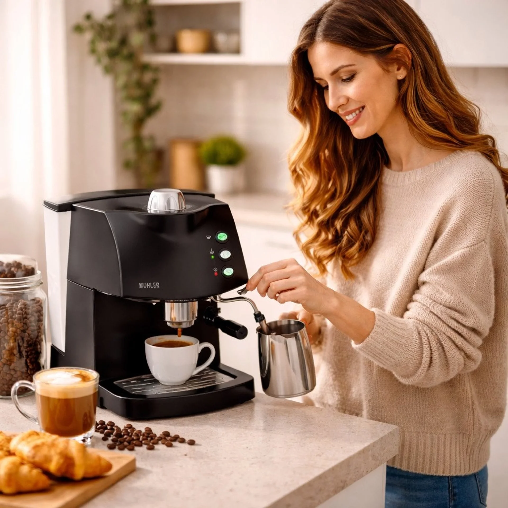 Еспресо машина Muhler MCM-1583, 925W, 15 BarЕспресо машината Muhler MCM-1583 е създадена за всички, които искат да се наслаждават на кафе с качество като от кафене – директно у дома. Съчетава висока мощност, стабилно налягане и удобни функции за приготвяне на перфектно еспресо, капучино и лате с богат аромат и плътен каймак. Основни характеристики:✔ Мощност: 925W – ефективна и икономична работа Аксесоари:✔ Ръкохватка с поставка за филтър Технически данни:✔ Захранване: 220–240V, 50–60Hz Предимства:✔ Перфектно еспресо и капучино у дома Заключение:Muhler MCM-1583 е идеалният избор за всеки любител на кафето, който търси качество, удобство и професионален резултат в домашни условия. |